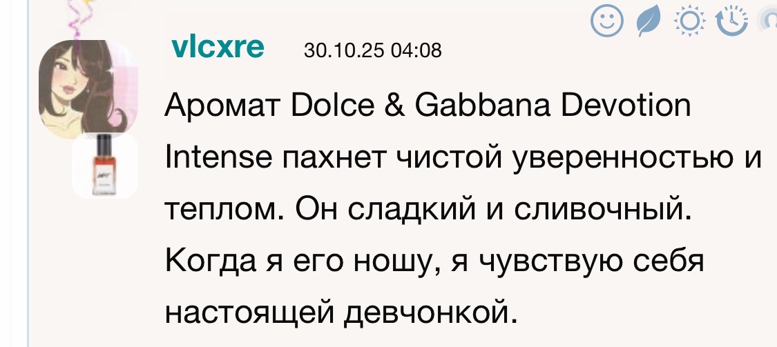 Аромат начинает звучание с декадентского запаха лесного ореха. Этот удивительный начальный аккорд готовит к парфюмерному приключению, которое уютно и гостеприимно захватывая чувства. Сердце композиции сосредоточено вокруг яркого, цветущего аромата цветков апельсина. Этот цветочный штрих привносит нотку света и изысканности, эффективно смешиваясь с декадансом лесного ореха и непринужденно приводя к роскошной основе композиции. Аромат Dolce & Gabbana Devotion Eau De Parfum Intense завершается богатством и очарованием ванили, создавая ощущение сладости и элегантности. Эта вневременная база формирует запоминающийся ольфакторный шлейф, окутывая уютными и пленительными объятиями.